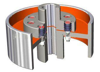 彈性套柱銷聯軸器結構比較簡單,制造容易,不用潤滑,不需要與金屬硫化粘結,更換彈性套方便,不用移動半聯軸器,具有一定補償兩軸相對偏移和減振緩沖性能。彈性套工作是受壓縮變形,由于彈性套的厚度較薄,體積小,彈性變形有限,所以,彈性套柱銷聯軸器雖可補償軸線位移和彈性,但軸線位移許用補償量較少,彈性較弱。彈性套柱銷聯軸器是依靠柱銷組的鎖緊力而產生于接觸面的摩擦力矩,并壓縮橡膠彈性套來傳遞轉矩。適用于安裝底座剛性好、對中精度較高、沖擊載荷不大、對減振要求不高的中小功率軸系傳動。
