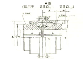 鼓形齒式聯軸器具有徑向、軸向和角向等軸線偏差補償能力,具有結構緊湊、回轉半徑小、承載能力大、傳動效率高、噪聲低及維修周期長等優點,特別適用于低速重載工況,如冶金、礦山、起重運輸等行業、也適用于石油、化工、通用機械等各類機械的軸系傳動,鼓形齒式聯軸器屬于剛撓性聯軸器,齒式聯軸器是由齒數相同的內齒圈和帶外齒的凸緣半聯軸器等零件組成。外齒分為直齒和鼓形齒兩種齒形,所謂鼓形齒即為將外齒制成球面,球面中心在齒輪軸線上,齒側間隙較一般齒輪大,鼓形齒聯軸器可允許較大的角位移(相對于直齒聯軸器),可改善齒的接觸條件,提高傳遞轉矩的能力,延長使用壽命。有角位移時沿齒寬的接觸狀態。 齒式聯軸器在工作時,兩軸產生相對角位移,內外齒的齒面周期性作軸向相對滑動,必然形成齒面磨損和功率消耗,因此,齒式聯軸器需在有良好和密封的狀態下工作。齒式聯軸器徑向尺寸小,承載能力大,常用于低速重載工況條件的軸系傳動,高精度并經動平衡的齒式聯軸器可用于高速傳動,如燃汽輪機的軸系傳動。由于鼓形齒式聯軸器角向補償大于直齒式聯軸器,國內外均廣泛采用鼓形齒式聯軸器,直齒式聯軸器屬于被淘汰的產品,選用者應盡量不選用。 GIICL鼓形齒式聯軸器基本參數和主要尺寸B型