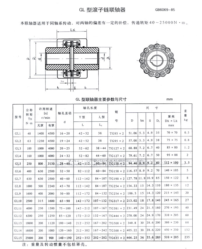 GL型滾子鏈聯軸器詳細介紹 DETAILS