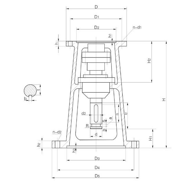 TJQ型機(jī)架的選用,原則上是根據(jù)減速機(jī)輸出軸徑的大小來確定機(jī)架型號(hào),只要接口形式及安裝尺寸相符,減速機(jī)的輸出軸大小在一定范圍內(nèi)可以對(duì)機(jī)架型號(hào)作上下浮動(dòng)。