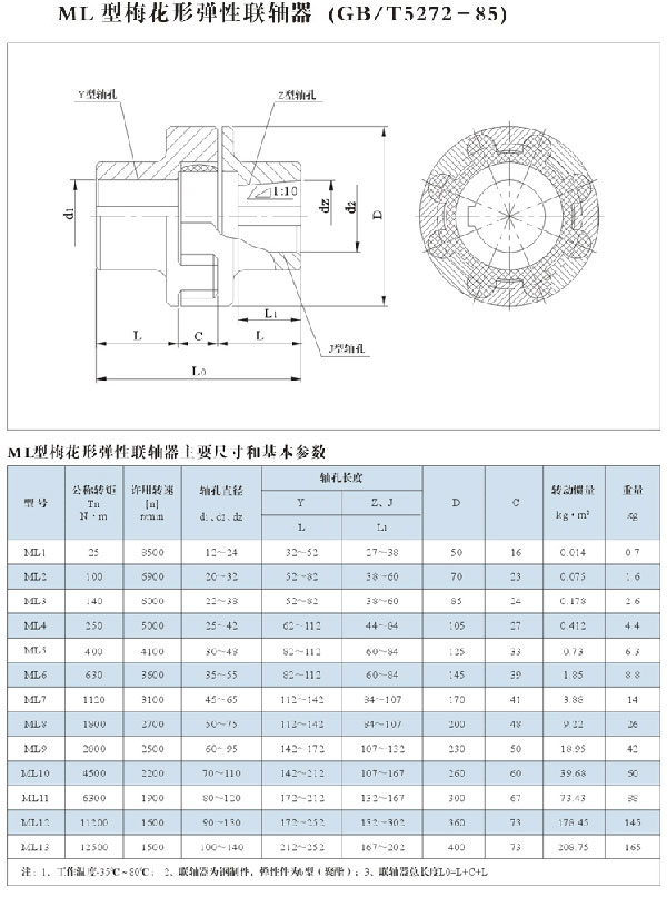 ML(原ML)系列梅花形彈性聯軸器(GB5272-2002)